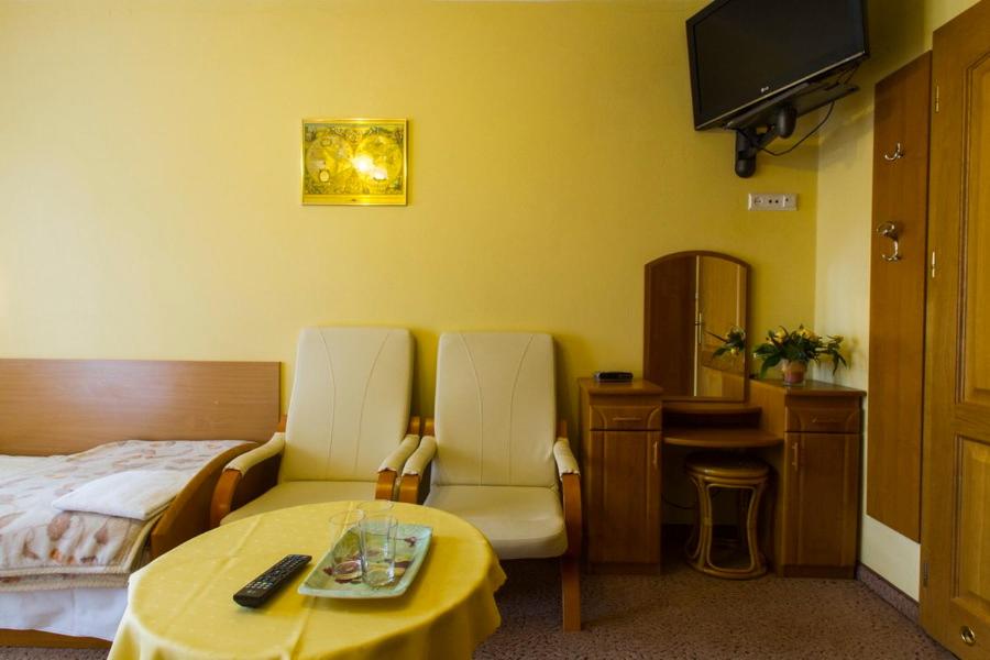 Pokój dwuosobowy z 1 lub 2 łóżkami – Pakiet Noworoczny. Pakiet obejmuje udogodnienia, takie jak: – Zakwaterowanie na 6 nocy – Pełne wyżywienie – Udział w zabawie sylwestrowej Pokój Dwuosobowy z 1 lub 2 łóżkami - 4 osobowy. Powierzchnia pokoju ok.: 14 mkw.